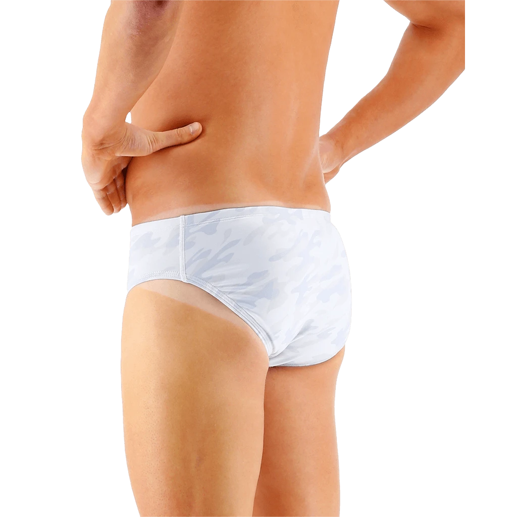 Stay a step ahead of the competition in the TYR Men’s Whiteout Camo Racer Swimsuit.